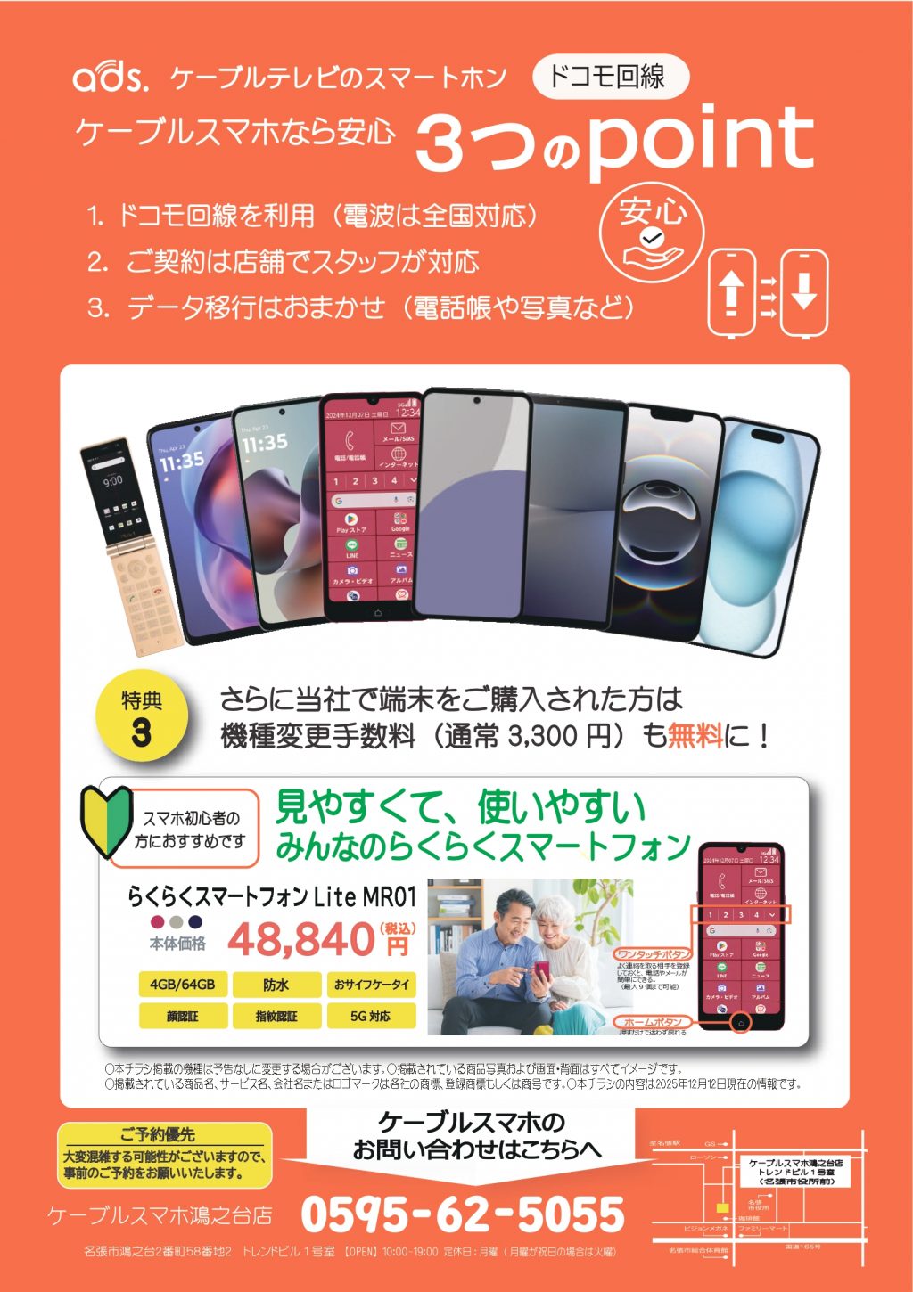 なお、休業日は「CATV SHOP ads.」名張駅東口「Navarie(なばりえ)」1階にて営業をしております。